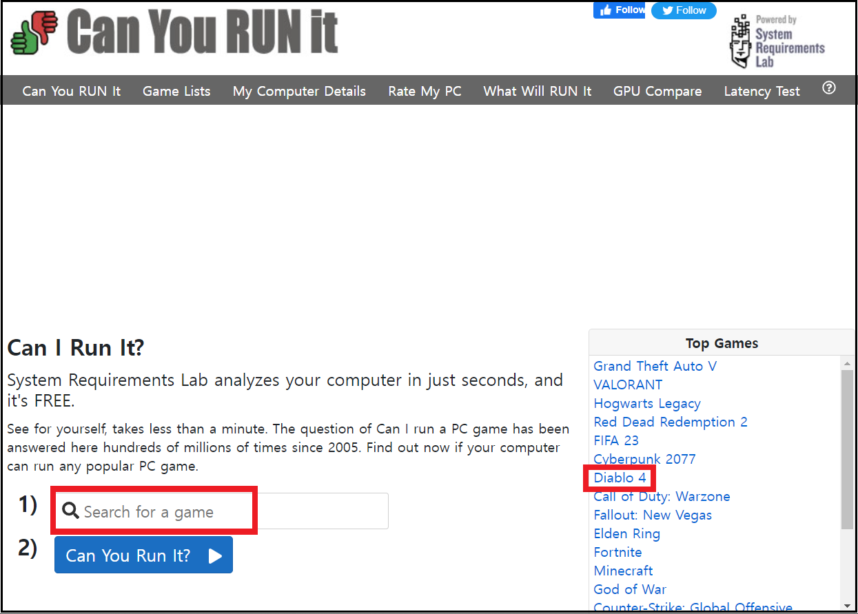 이제 내 PC 사양을 확인하고 디아블로4 게임하기에 적절한지 자동으로 판단해 주는 사이트를 이용하는 방법을 순서대로 알려드리겠습니다.