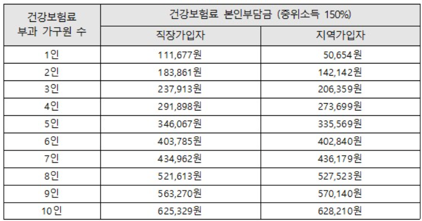 - (3) 소득요건 : 2023년 5월 기준 중위소득 150% 이하이면 신청 가능합니다. 중위소득이라 하면, 신청자가 매월 내고 있는 건강보험료 월 부과액을 기준으로 중위소득을 산출합니다. 만약 신청자가 직접 건강보험료를 내지 않고 부모님이나 다른 사람 아래에 피부양자로 등록된 경우, 부양자(여기 예시의 경우 부모님)에게 부과한 건강보험료 금액을 기준으로 합니다.