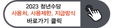 - 취업성공금 : (1)청년수당 5회차 지급 전 취업 : 남은 청년수당 지급분의 절반 지급. (2) 5회차 지급 후 취업 : 남은 1회분 수당 지급