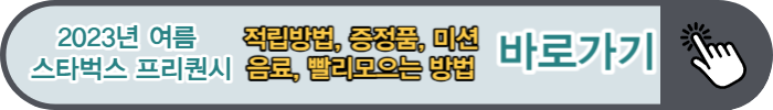 | 2023 여름 스타벅스 프리퀀시 적립방법, 증정품, 미션음료, 빨리 모으는 방법 (0) | 2023.06.13 |