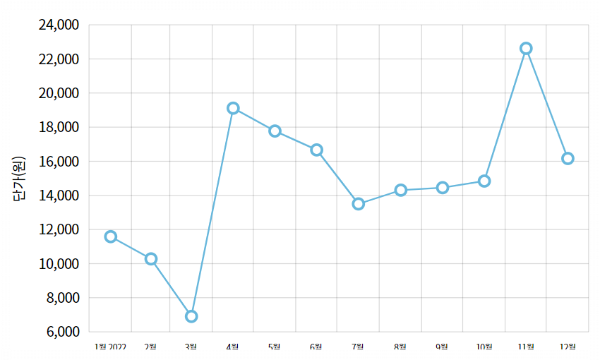 - 2022년 체리의 도매판매 가격 기준으로 3월이 최저 가격이었습니다. 월별 가격은 참고만 하고, 구매할 때는 가격뿐만 아니라 체리의 제철이 도래하는 시기와 해외에서 수입되는 시점을 고려하여 구매하는 것이 좋습니다.